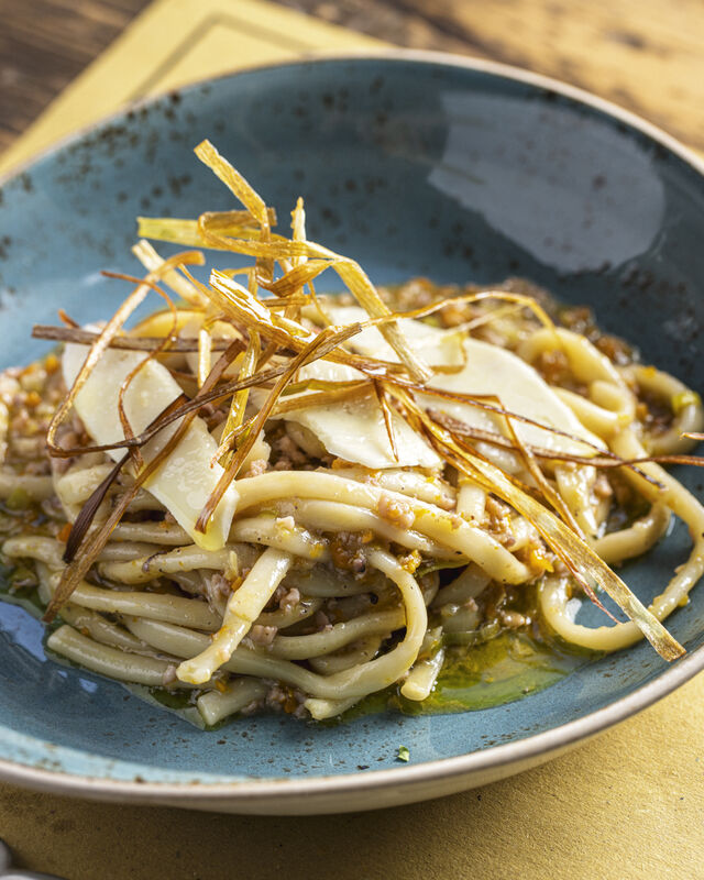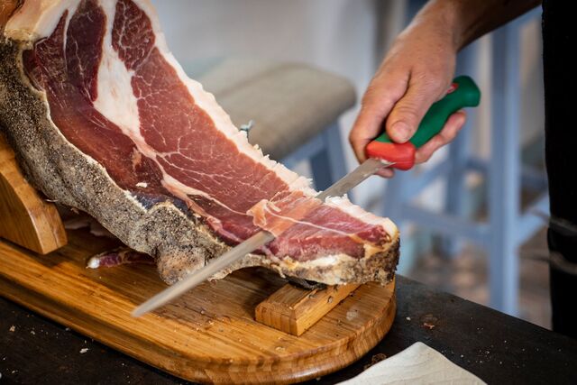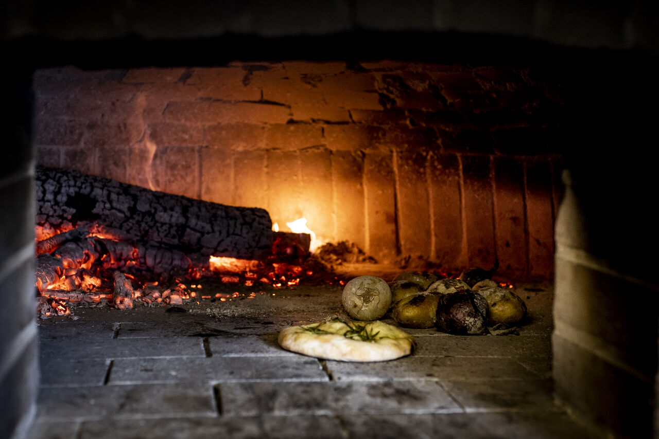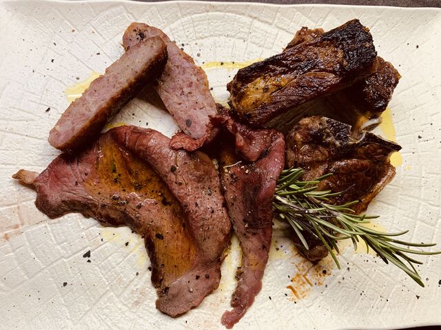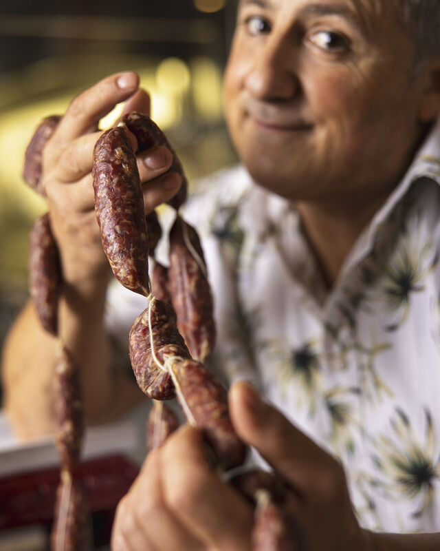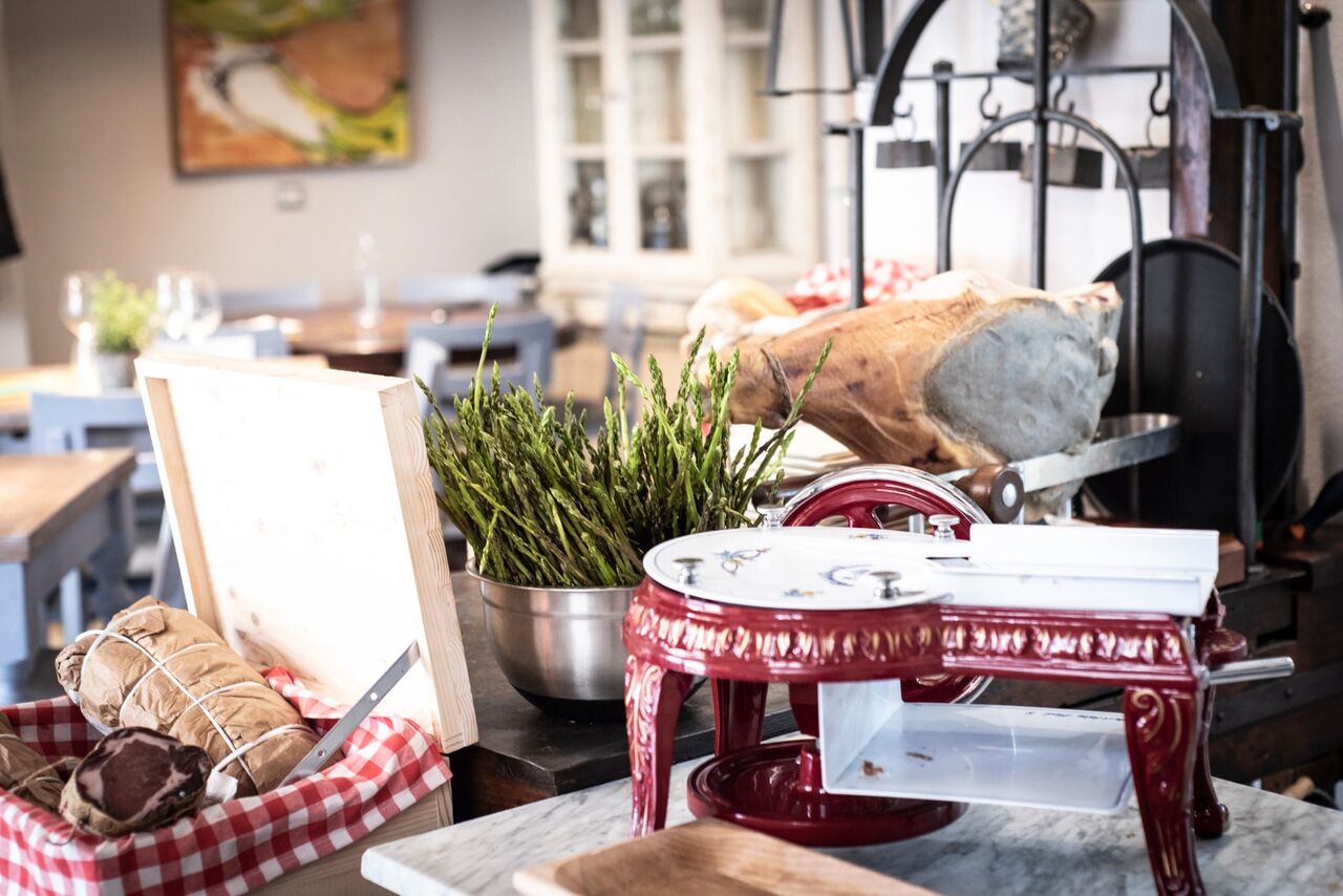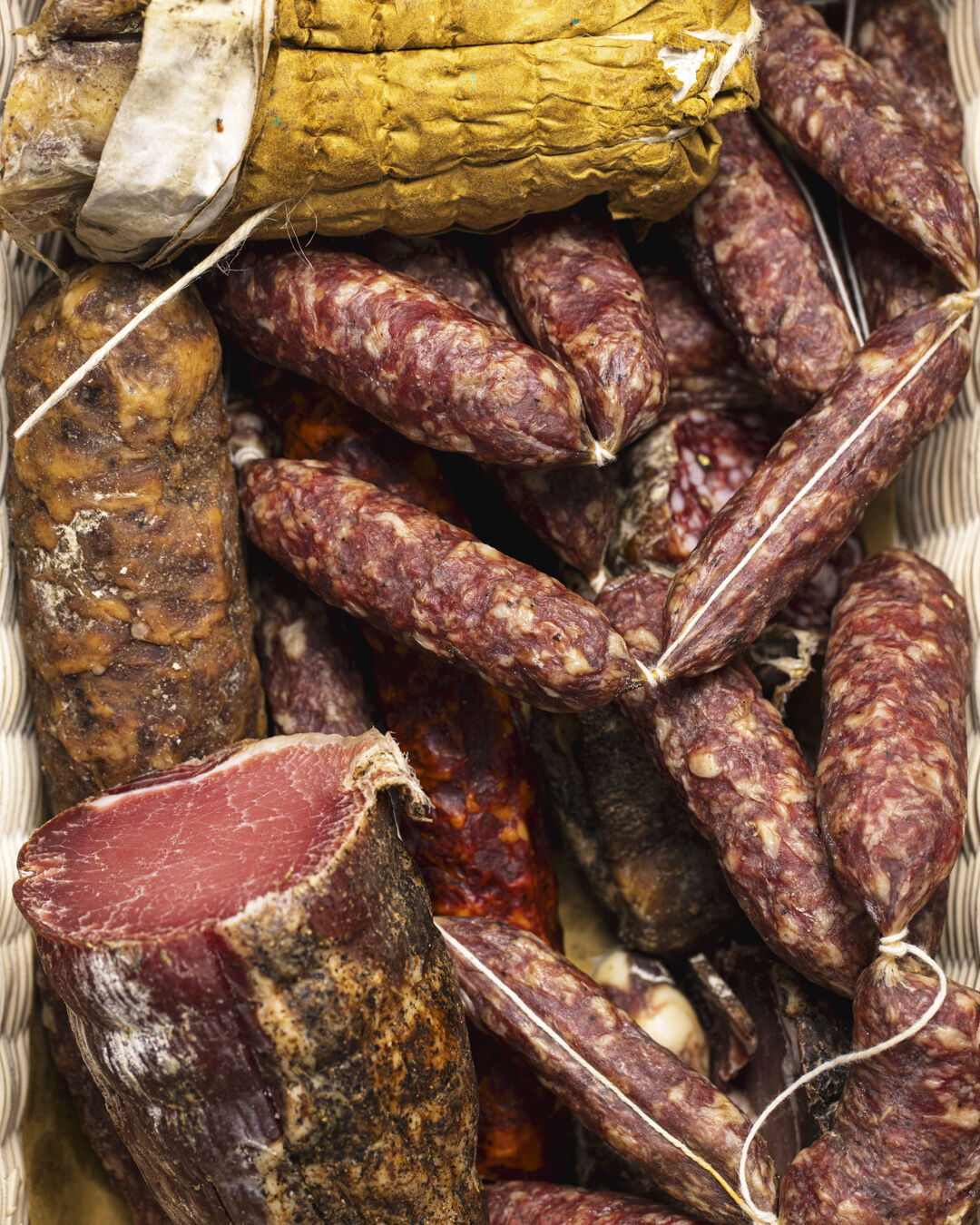 Tutti i prodotti provengono dalla mia azienda in Umbria; l'olio, le verdure, i salumi e le carni, il grano con cui realizziamo le nostre farine per la pasta e il pane di nostra produzione e i dolci.